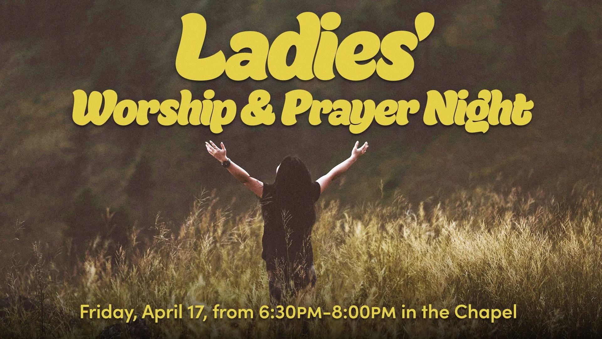 Back to All Events Ladies’ Worship and Prayer Night Friday, April 17, 2026 6:30 PM 8:00 PM Google Calendar ICS Ladies, please join us for an evening of worship, prayer, and light refreshments! We would love to see you! Join us and invite your family and friends!