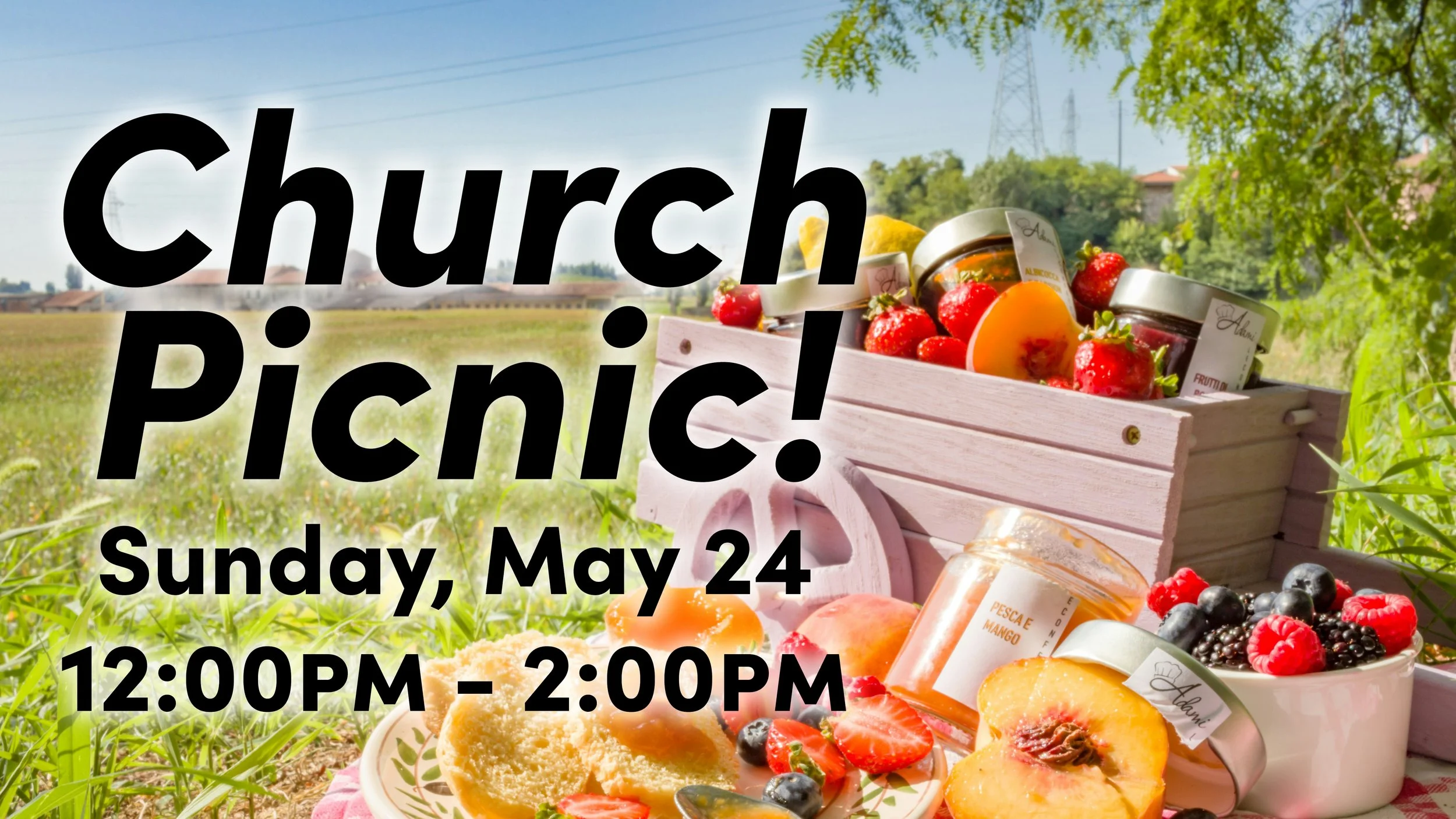 Church Picnic Sunday, May 24, 2026 12:00 PM 2:00 PM Google Calendar ICS Join us for a picnic after service! Please bring two side dishes to share and a lawn chair. To volunteer with set up or clean up, please contact Stephen Laird.